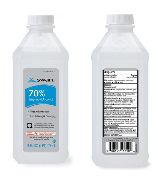Swan Isopropyl 70% Rubbing Alcohol - 16oz bottles - Case of 12