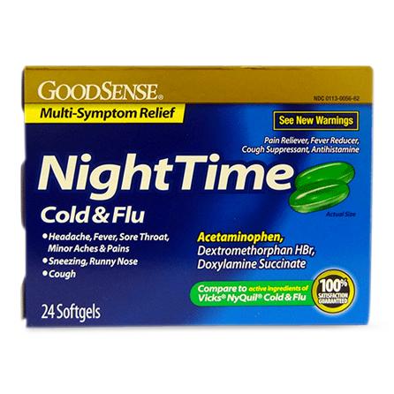 - Full FDB Description:NIGHT TIME COLD-FLU RLF SFTGL SOFTGEL